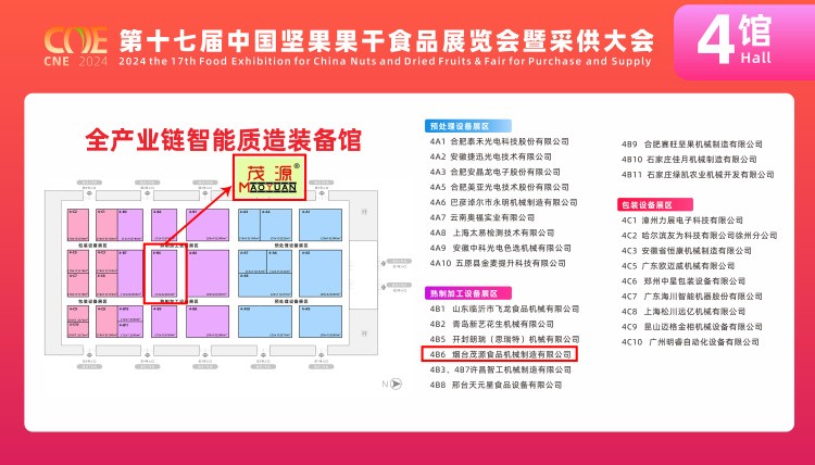 此次展會(huì)初次設(shè)立“全產(chǎn)業(yè)鏈智能質(zhì)造裝備館”,并將該館設(shè)在4號(hào)展館。全產(chǎn)業(yè)鏈智能質(zhì)造裝備館是本屆展會(huì)中代表堅(jiān)果果干行業(yè)裝備風(fēng)向標(biāo)的旗艦館,該館匯集了預(yù)處理設(shè)備、熟制加工設(shè)備、包裝設(shè)備三大展區(qū),覆蓋行業(yè)全產(chǎn)業(yè)鏈,全方位展示先進(jìn)技術(shù)、高端設(shè)備、智能系統(tǒng)、過(guò)硬質(zhì)量及應(yīng)用效果,為食品企業(yè)提供一站式裝備應(yīng)用解決方案。