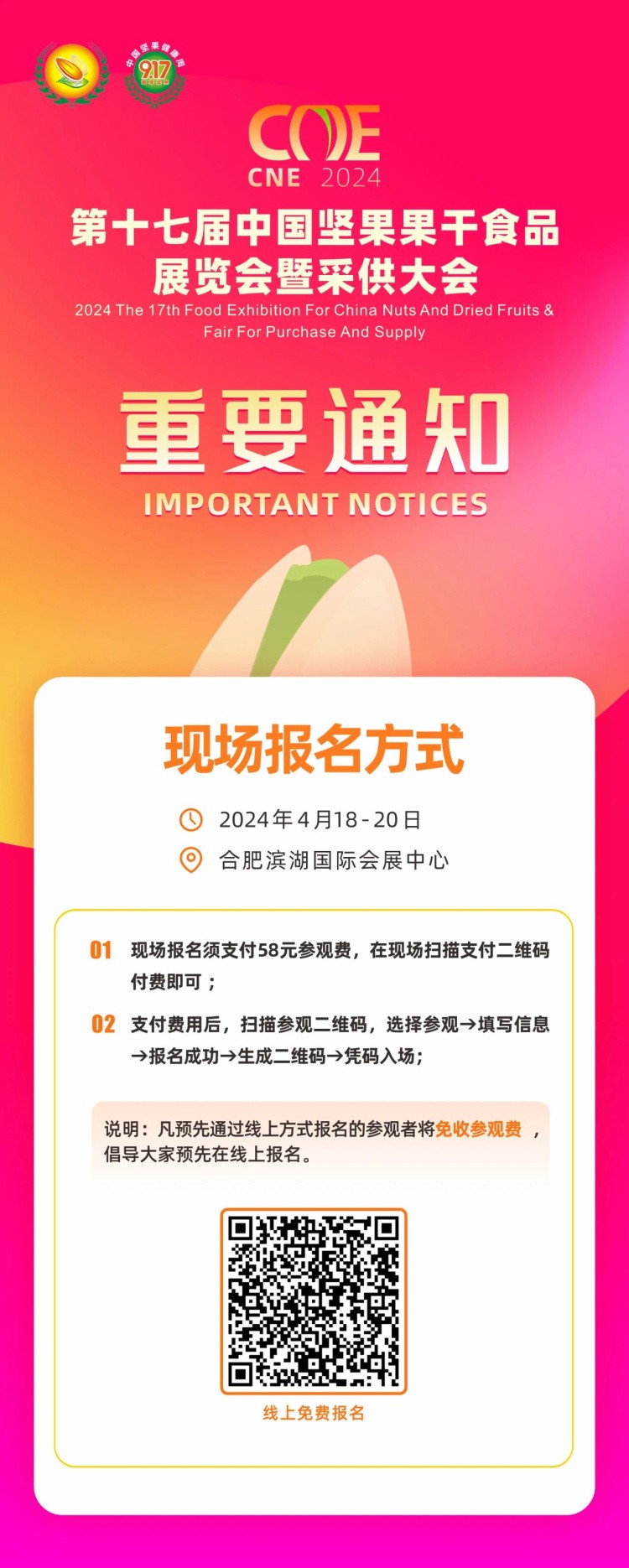 4月18-20日,第十七屆中國(guó)堅(jiān)果炒貨干果果干食品展覽會(huì)暨采供大會(huì)將在合肥濱湖國(guó)際會(huì)展中心盛大開(kāi)幕!